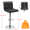 Adjustable Modern Faux Leather Mid-Back Bar Stool, Set of 2, Black - Black