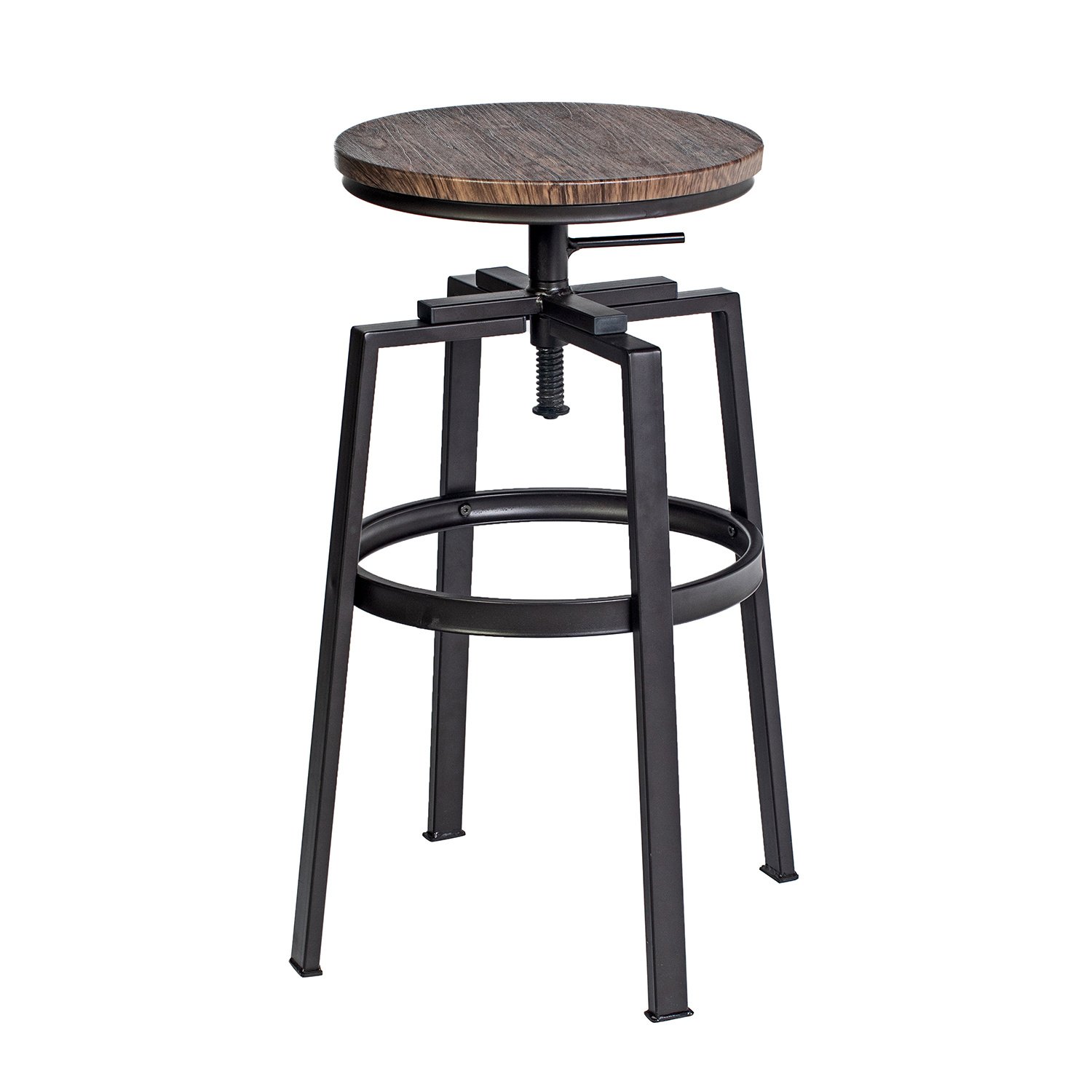 4.Brimming with industrial inspiration, this design showcases an antique finished wood like seat and a metal frame, this distinctive swivel bar stool anchors any space with a dash of industrial appeal.